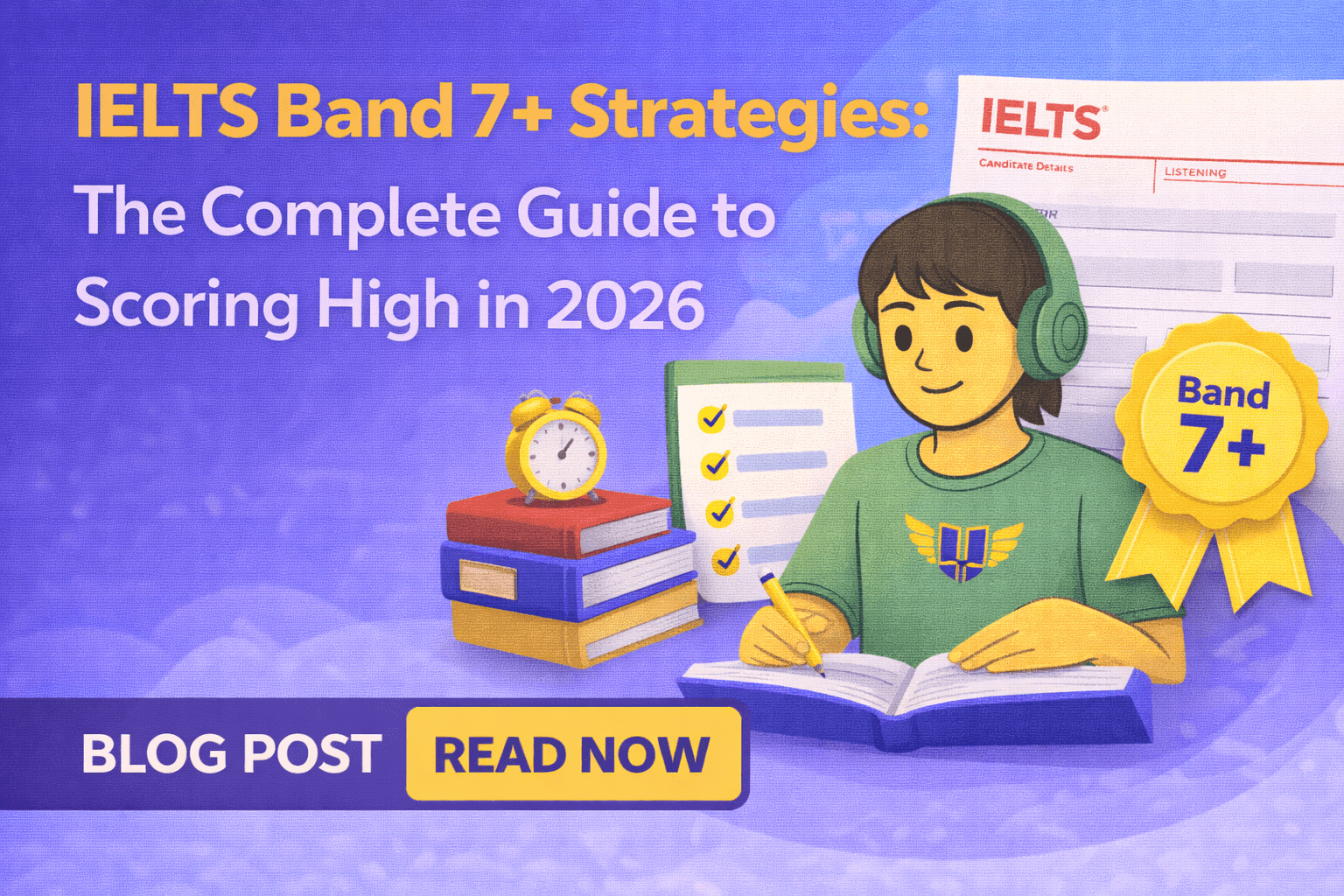 Learn the most effective IELTS Band 7+ strategies for Writing, Speaking, Reading & Listening. Expert tips, templates, and step-by-step methods for scoring 7, 7.5 and above.
